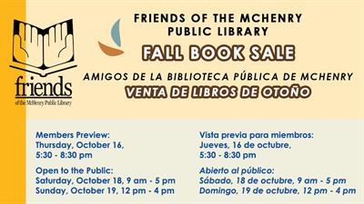 Check out the Friends of the McHenry Library Fall Used Book Sale. The book sale will feature hundreds of hardcover and paperback books, movies, music, and more at bargain prices. Visitors are asked to park in the far northwest area of the parking lot and use the Warehouse entry. There will be no direct access to the sale from the Library. Anyone bringing in a scanner will be charged a $10 fee.